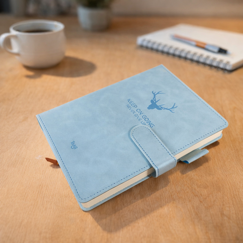 Mencatat sesuatu secara manual terkadang lebih efektif ketimbang secara digital. Agar catatan Anda rapi dan tersimpan baik, gunakanlah buku jurnal harian dari Toddi! Dengan 180 lembar atau 360 halaman dari cover depan hingga belakang, Anda dapat mencatat banyak hal. Bukan buku jurnal biasa, kertas A5 yang dibalut cover kulit PU membuatnya tampak premium. Sangat bergaya ketika dibawa ke kantor, kampus, atau sekolah.