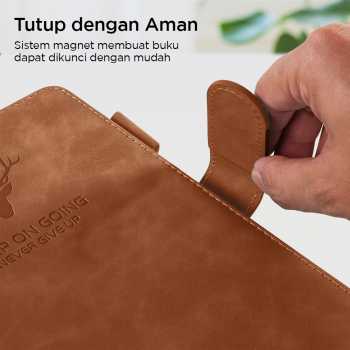 Dibalut dengan cover kulit sintetis PU yang memberikan tampilan mewah dan tahan lama. Material kulit PU ini tidak hanya memberikan kesan premium tetapi juga tahan terhadap goresan dan noda, menjadikan buku ini tetap terlihat elegan meskipun sering digunakan. Ukiran elegan pada covernya menambah kesan vintage yang membuatnya tampak lebih berkelas saat dibawa ke kantor atau kampus.
