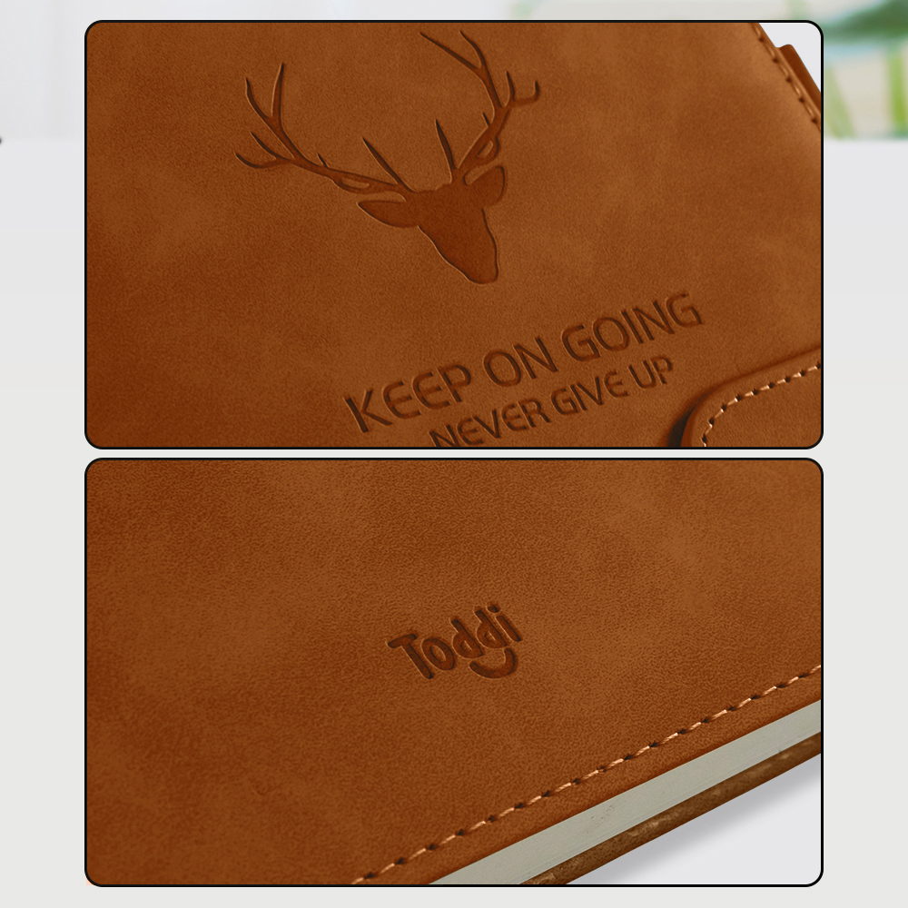 Mencatat sesuatu secara manual terkadang lebih efektif ketimbang secara digital. Agar catatan Anda rapi dan tersimpan baik, gunakanlah buku jurnal harian dari Toddi! Dengan 180 lembar atau 360 halaman dari cover depan hingga belakang, Anda dapat mencatat banyak hal. Bukan buku jurnal biasa, kertas A5 yang dibalut cover kulit PU membuatnya tampak premium. Sangat bergaya ketika dibawa ke kantor, kampus, atau sekolah.