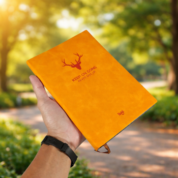 | Cover Premium yang Elegan Sampul bermotif suede menghadirkan kesan mewah dan profesional. Terbuat dari kulit sintetis tebal, sampul ini tidak hanya mempercantik tampilan tetapi juga melindungi isi catatan Anda agar tetap terjaga dalam waktu lama. |