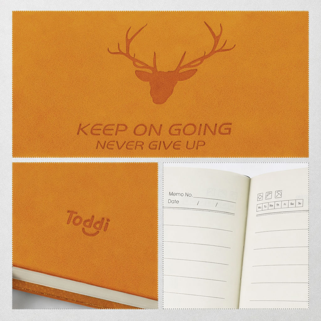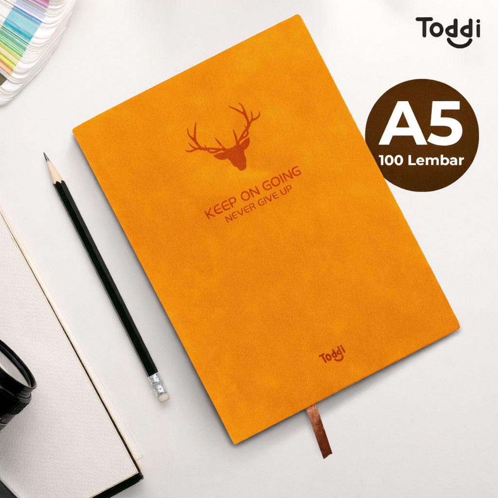 Jurnal Toddi hadir dengan cover suede premium, 200 halaman luas, kertas tebal anti tembus, dan jilid jahit fleksibel 180°. Ideal untuk catatan harian hingga ide kreatif Anda.