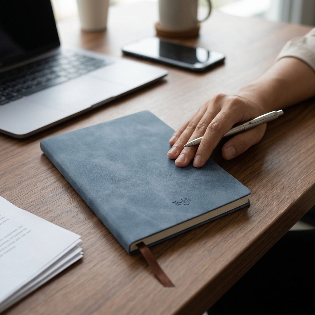Notebook jurnal Toddi hadir dengan desain compact dan elegan untuk menemani aktivitas harian Anda. Dibekali cover PU leather premium yang tahan lama serta nyaman digenggam. Memiliki 160 halaman kertas 68 GSM yang ideal untuk menulis catatan, to-do list, jurnal, hingga ide kreatif. Ukurannya ringkas, mudah dibawa, dan cocok untuk kerja, sekolah, maupun penggunaan sehari-hari.