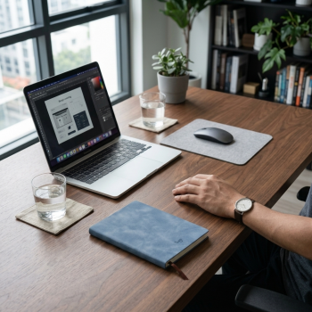 | Cover PU Leather Premium Cover menggunakan bahan kulit sintetis (PU leather) berkualitas tinggi yang memberikan tampilan elegan dan profesional. Tekstur halus menyerupai suede membuat notebook terasa nyaman saat digenggam dan terlihat lebih eksklusif dibanding buku biasa. Selain estetika, cover ini juga berfungsi melindungi isi buku dari debu, goresan, dan lipatan sehingga lebih tahan lama. |