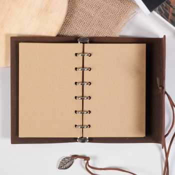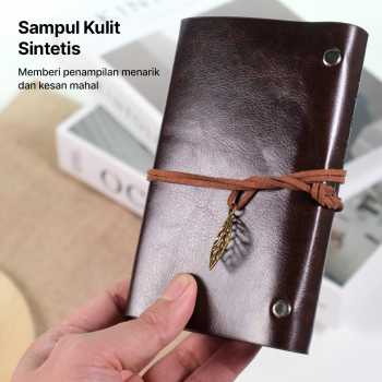 | Sampul Kulit Sintetis Bergaya Retro Sampul dibuat dari bahan kulit sintetis berkualitas yang memberikan kesan elegan dan premium. Dilengkapi penutup tali dengan ornamen daun (leaf) yang memperkuat nuansa retro klasik dan membuat tampilannya semakin estetik. |