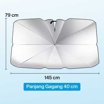 | Ukuran 145 x 79 cm Cocok untuk sebagian besar mobil city car dan sedan kecil. Disarankan mengukur kaca depan kendaraan sebelum membeli untuk memastikan ukuran sesuai. |