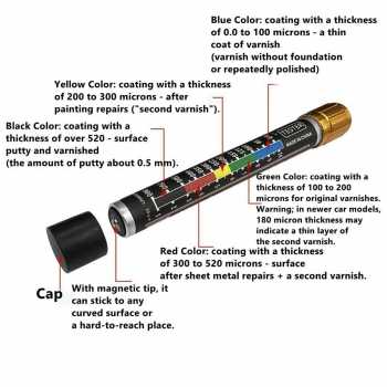 Deteksi ketebalan lapisan cat mobil dengan menggunakan alat tes ketebalan cat mobil yang satu ini. Alat ini membantu Anda mengetahui apakah sebuah mobil masih memiliki cat original pabrik atau telah mengalami perbaikan, pengecatan ulang, maupun penggunaan dempul, tanpa perlu membongkar bodi kendaraan. Dilengkapi degan skala yang jelas dan bentuk portable sehingga mudah disimpan dan dibawa ke mana saja.
