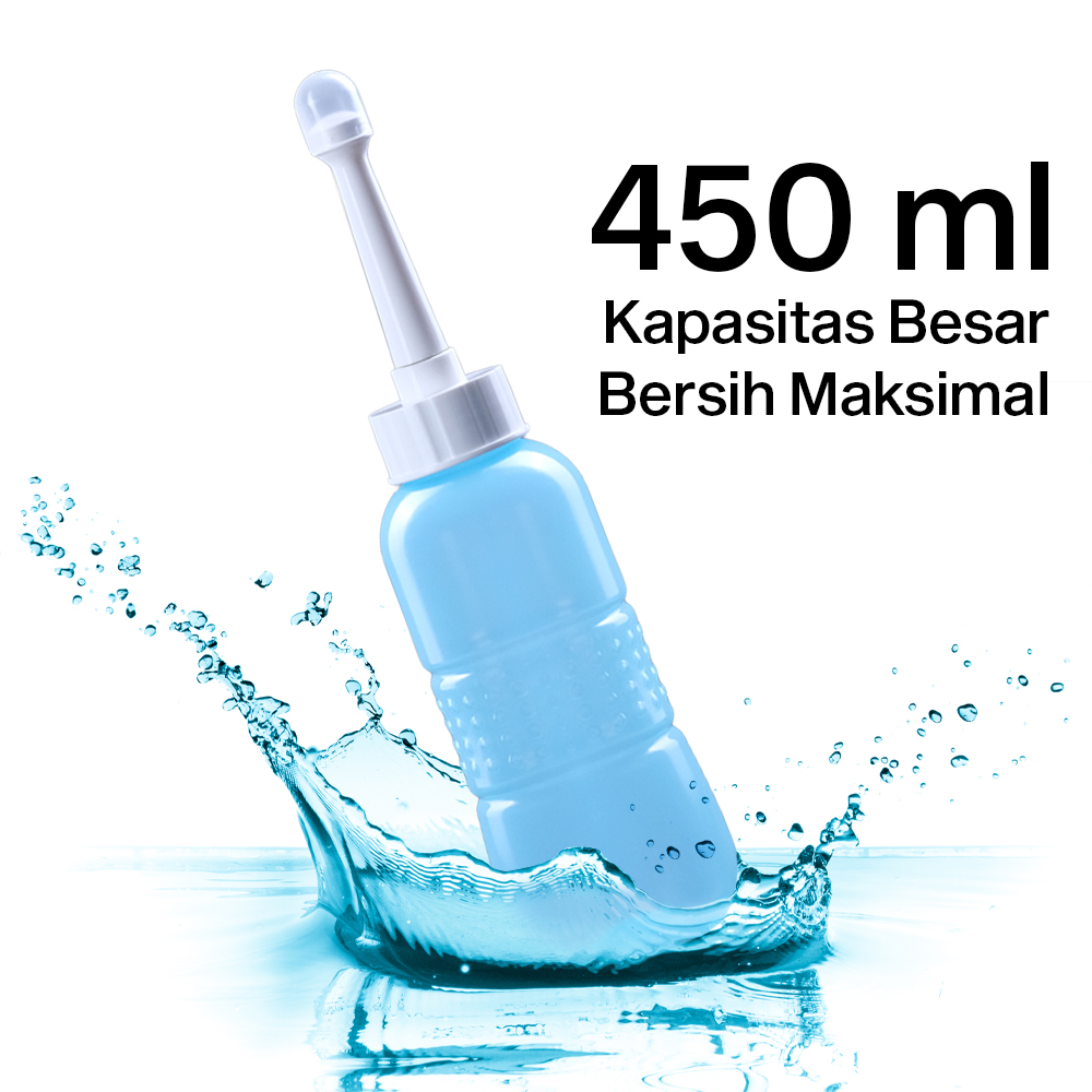 | Kapasitas Besar, Bersih Maksimal Dibuat khusus sebagai produk sanitasi, bidet portable ini memiliki kapasitas besar 450 ml. Gunakan untuk membersihkan diri dengan maksimal setelah buang air kecil atau besar. |