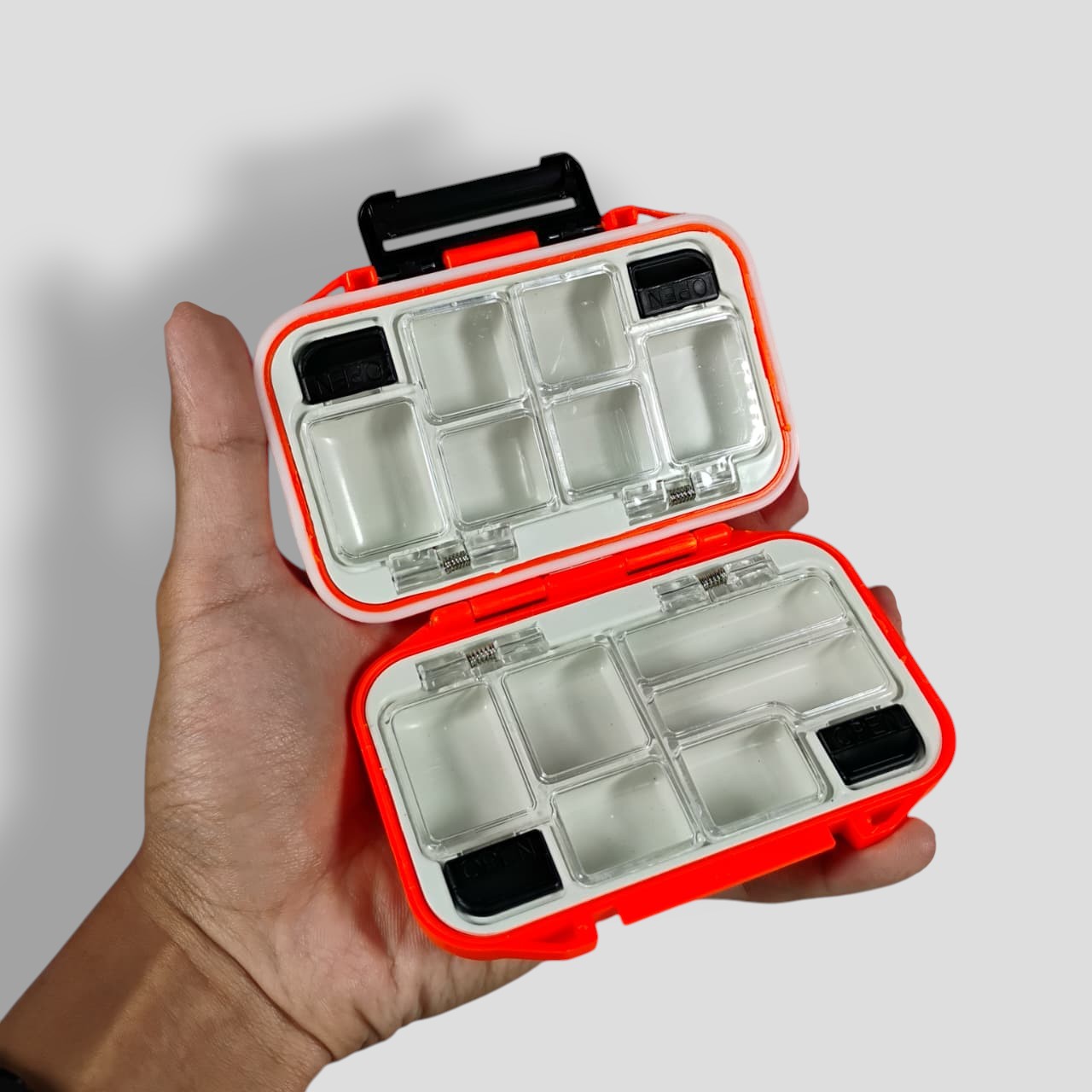 | Memiliki Banyak Kompartemen Memiliki 12 ruang untuk memisahkan berbagai aksesori mulai dari mata pancing, umpan, pemberat dan sebagainya sehingga perlengkapan bisa lebih rapi. Dilengkapi juga dengan tutup supaya lebih aman. Tak perlu lagi kebingungan mencari aksesori pancing karena sudah tersusun dengan rapi. |