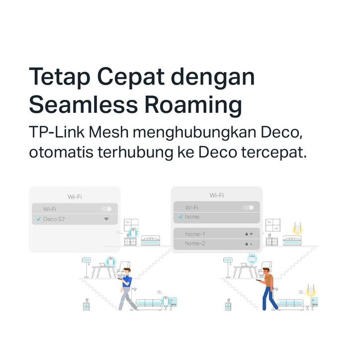 Jaga konektivitas rumah atau kantor Anda tetap stabil dan cepat dengan TP-LINK Deco S7. Dilengkapi dengan dual band yang mampu memberikan koneksi yang stabil sesuai dengan kebutuhan. Mampu terhubung dengan lebih dari 100 perangkat secara bersamaan tanpa mengurangi kecepatan koneksi. Tidak akan ada sudut mati karena jaringannya tersebar ke seluruh ruangan tanpa terkecuali. Selain sebagai router, berfungsi juga sebagai access point.