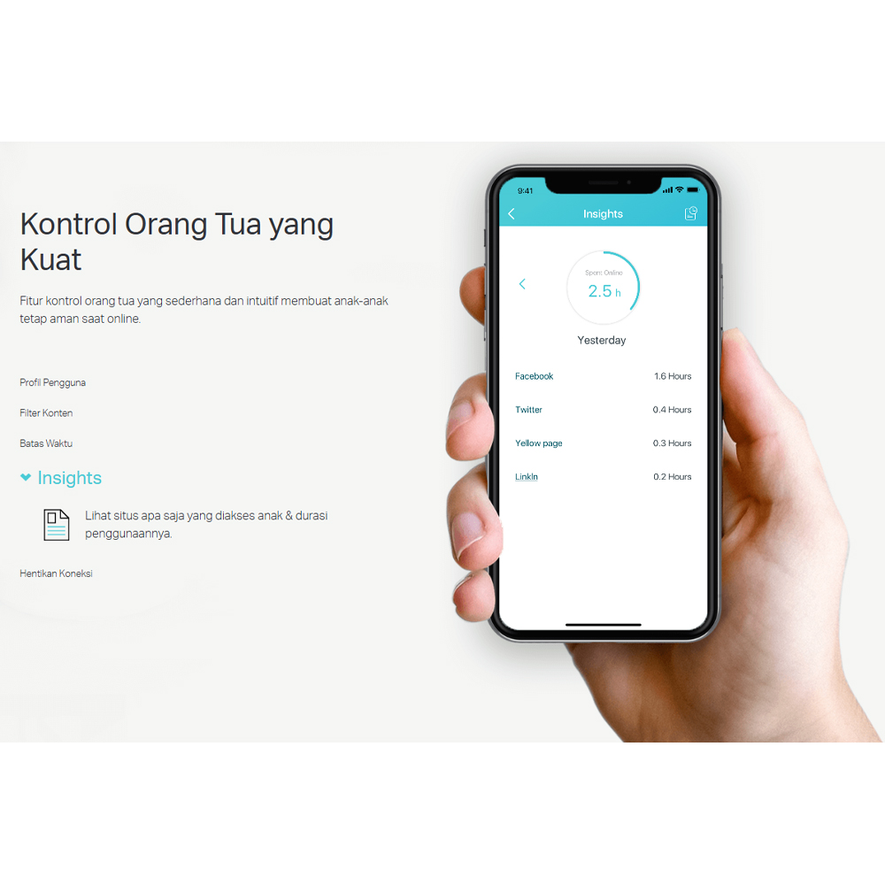 | Kontrol Orang Tua yang Canggih Tetap kontrol penggunaan internet di rumah dengan fitur Parental Controls yang canggih. Batasi waktu akses dan blokir situs web yang tidak sesuai dengan profil setiap pengguna. Dengan kontrol orang tua ini, Anda dapat memberikan pengalaman internet yang lebih aman dan terjamin bagi anak-anak, memastikan mereka mengakses konten yang sesuai dengan usia mereka. |