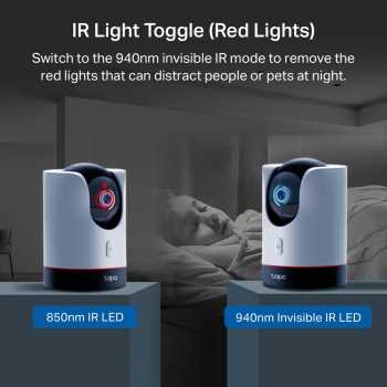 | Mode Infrared Fleksibel Tanpa Gangguan Fitur IR Light toggle memungkinkan perubahan gelombang infrared dari 850 nm ke 940 nm invisible IR. Mode ini menghilangkan cahaya merah yang biasanya terlihat, sehingga tidak mengganggu penghuni rumah atau hewan peliharaan saat malam hari. |
