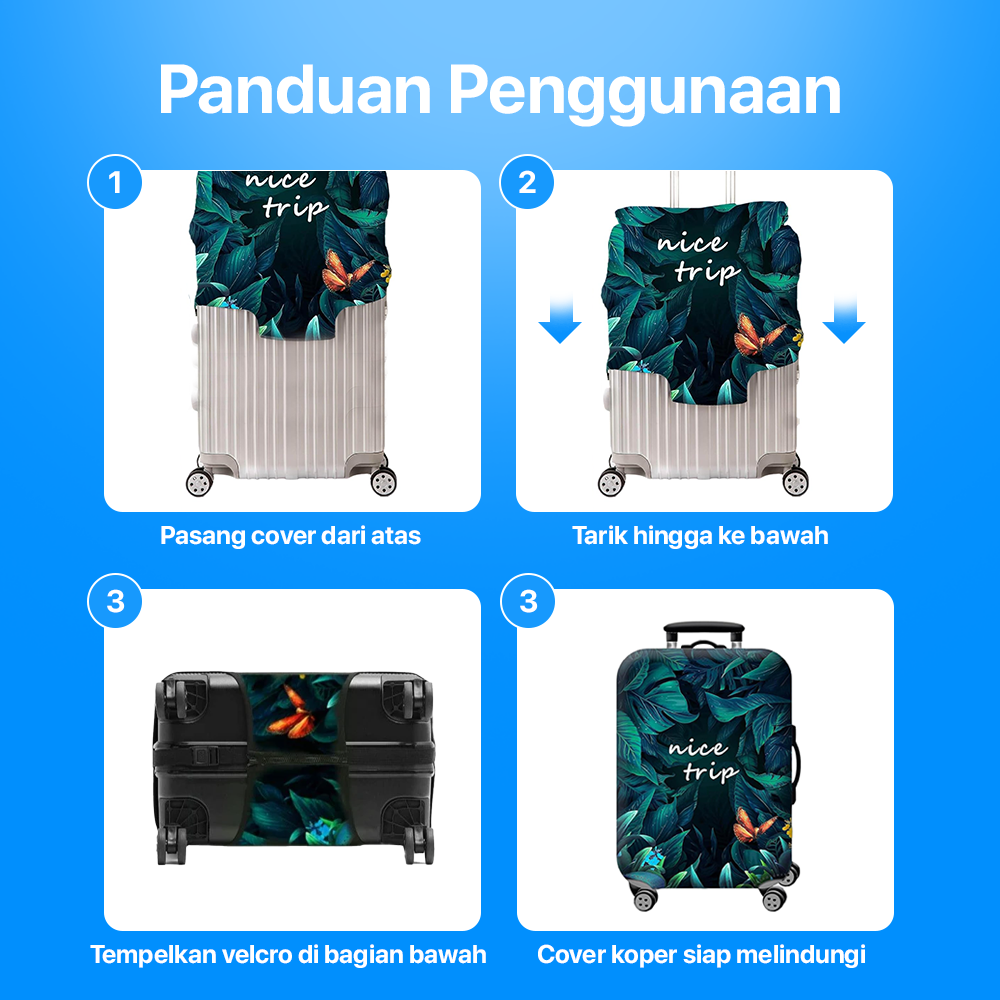 | Penggunaan yang Mudah dan Praktis Memasang cover ini sangat mudah dan cepat. Cukup masukkan koper ke dalam cover melalui lubang yang tersedia, lalu kunci bagian bawahnya dengan ritsleting yang kuat serta tambahan strap pengunci untuk keamanan ekstra. Untuk varian model Intercontinental Map, bagian bawah menggunakan perekat Velcro yang tidak kalah aman dan praktis. Dalam hitungan detik, koper Anda siap digunakan dengan perlindungan optimal. |