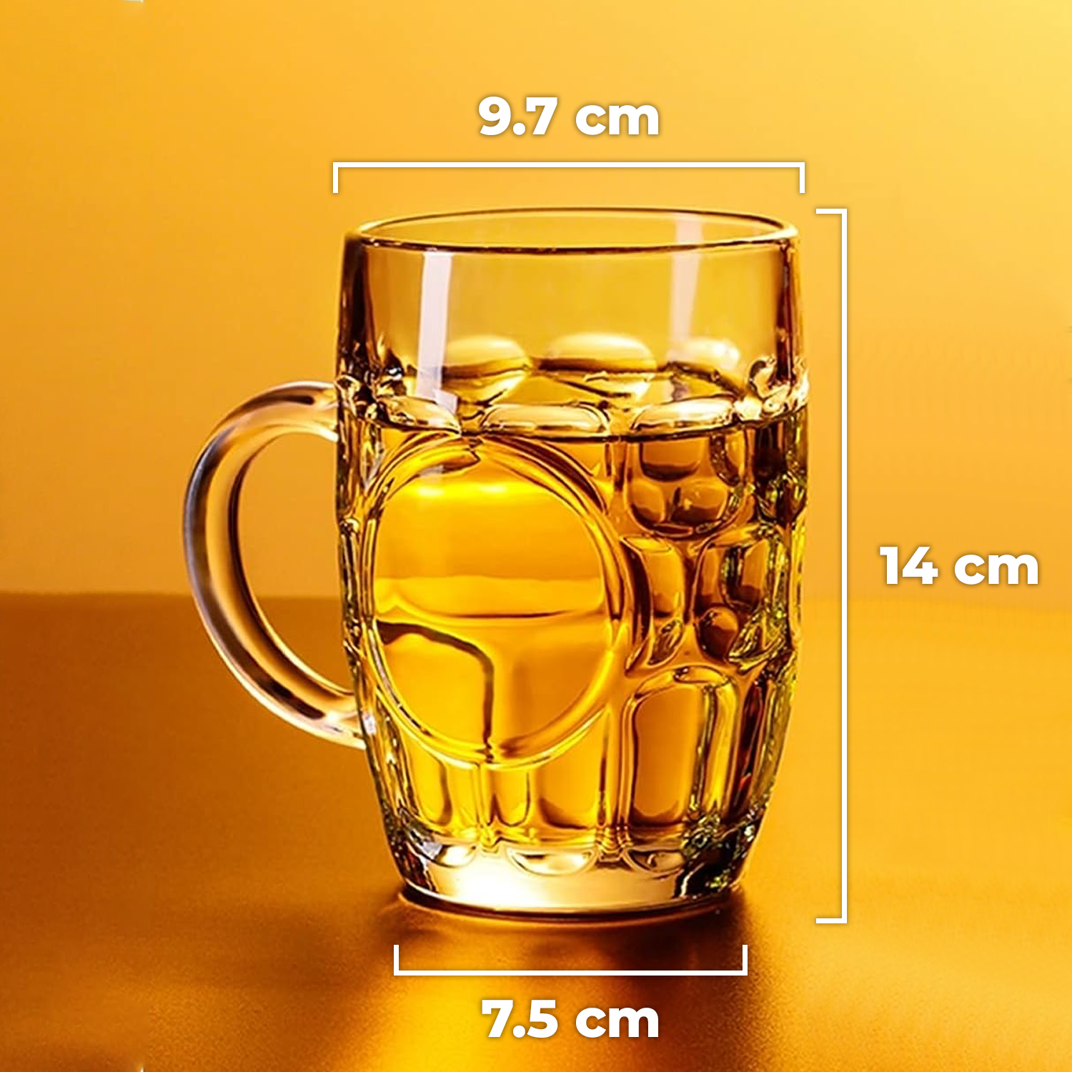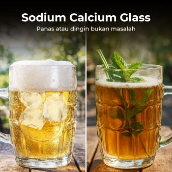 | Konstruksi Kuat dan Tahan Lama Material sodium calcium glass tahan gores ringan, perubahan suhu, dan benturan, membuat mug bir awet untuk penggunaan harian. Permukaannya halus dan mudah dibersihkan, baik manual maupun dishwasher. |