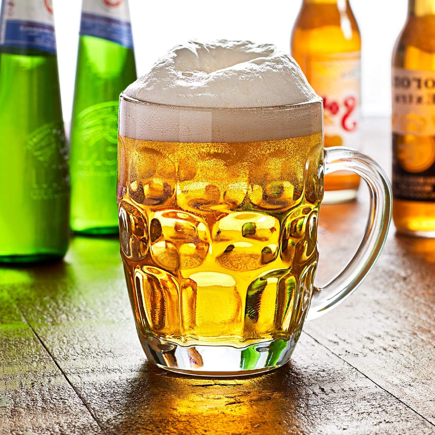 | Kenyamanan dalam Genggaman Pegangan ergonomis memudahkan Anda mengangkat dan memegang gelas bir tanpa licin. Handlenya juga mencegah panas tangan memengaruhi suhu bir sehingga Anda bisa minum bir dengan suhu yang menyegarkan. |