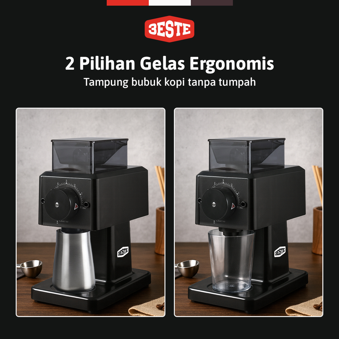| Tampung Bubuk Anti Tumpah Dilengkapi gelas untuk menampung hasil gilingan, kini Anda tak perlu khawtir area dapur atau pantry kotor. Tersedia dalam varian stainless steel dan plastik yang bisa dipilih sesuai kebutuhan. |
