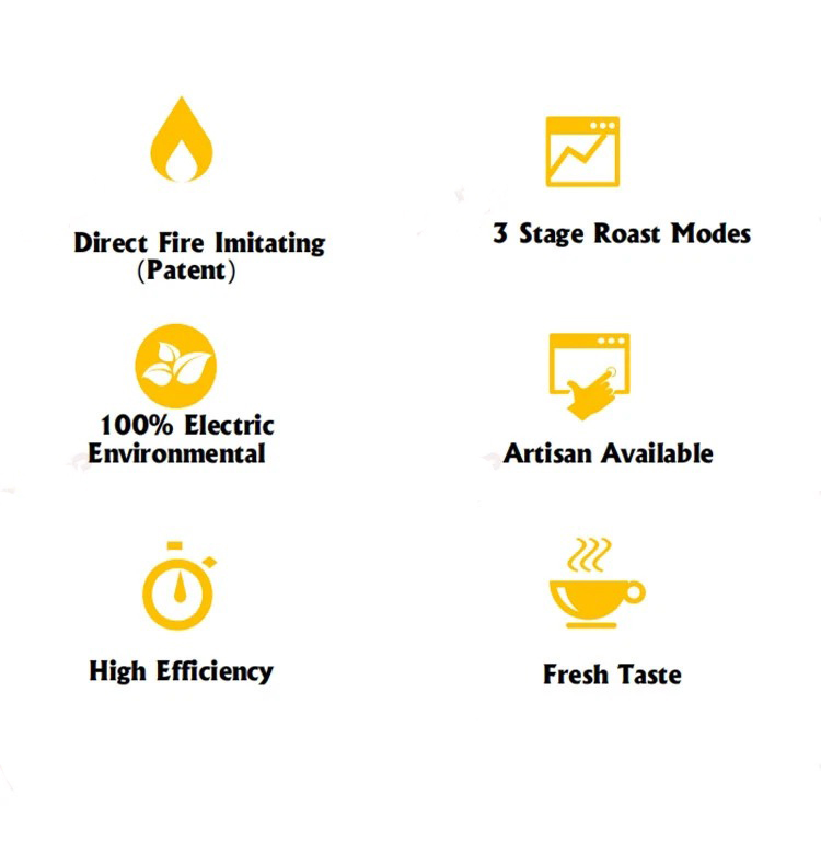 | Panas Cepat dan Stabil Menggunakan desain drum-type dengan sistem pemanas presisi, alat ini menawarkan respons panas yang cepat dan stabil. Pengaturan daya dapat disesuaikan secara fleksibel sesuai fase sangrai, menghasilkan kontrol api yang halus dan mendekati karakter sangrai direct-fire profesional. |