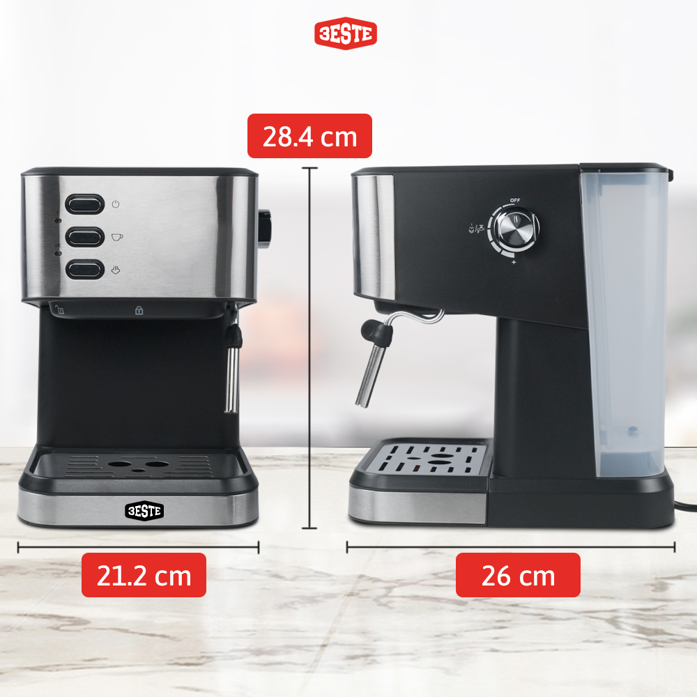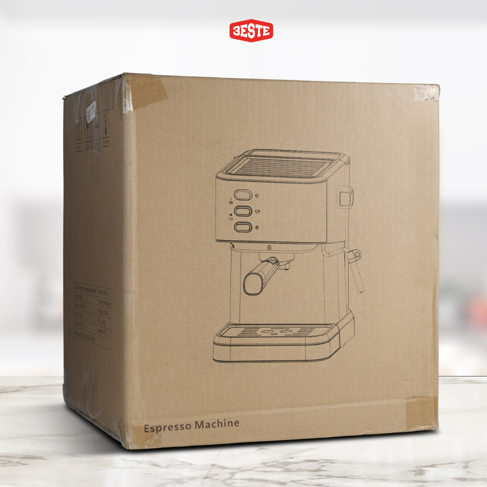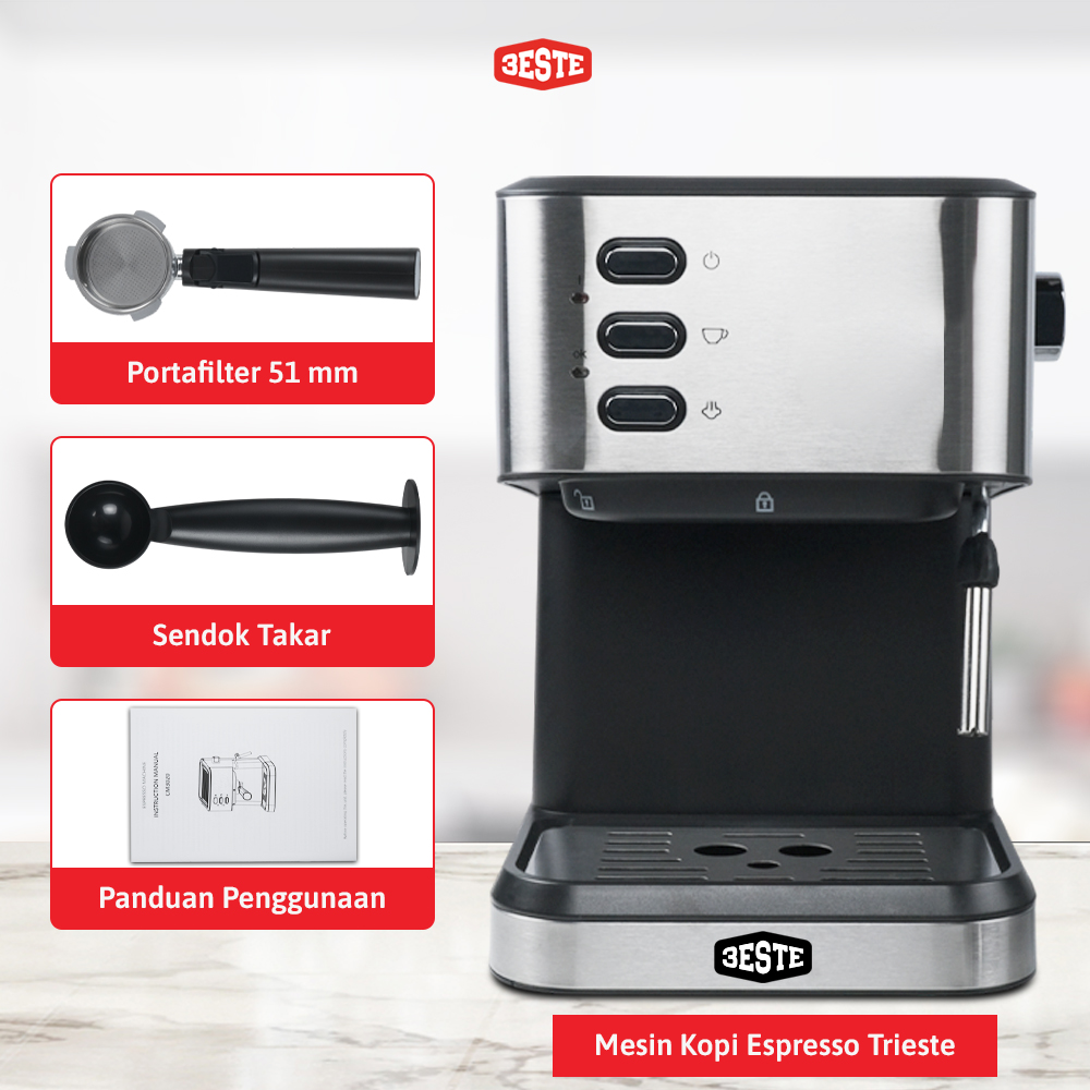 Nikmati sajian kopi ala cafe dari rumah dengan menggunakan mesin kopi Trieste. Mesin bertekanan 20 bar dan teknologi pre-soaking hasilkan espresso dengan crema kaya rasa. Buat aneka kreasi kopi lebih praktis dengan steam wand untuk hasilkan buih susu lembut. Lengkap dengan tombol preset yang dapat dipilih sesuai kebutuhan. Hadir dengan desain elegan yang membuatnya cocok untuk melengkapi dekorasi dapur hingga cafe.