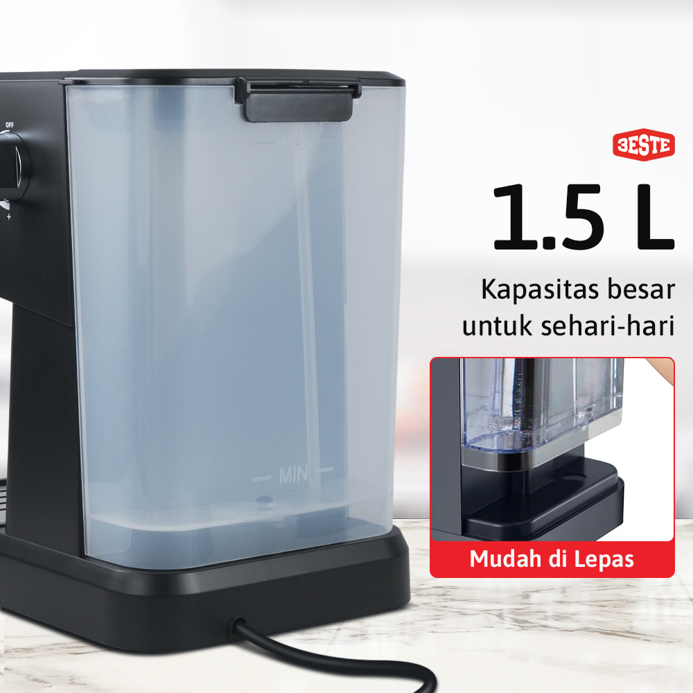 | Kapasitas Besar untuk Sehari-hari Tak perlu repot mengisi air ke tangki terus-menerus sebelum membuat kopi. Mesin kopi ini dapat menampung air hingga 1.5 L untuk membuat beberapa cangkir kopi sekaligus. |