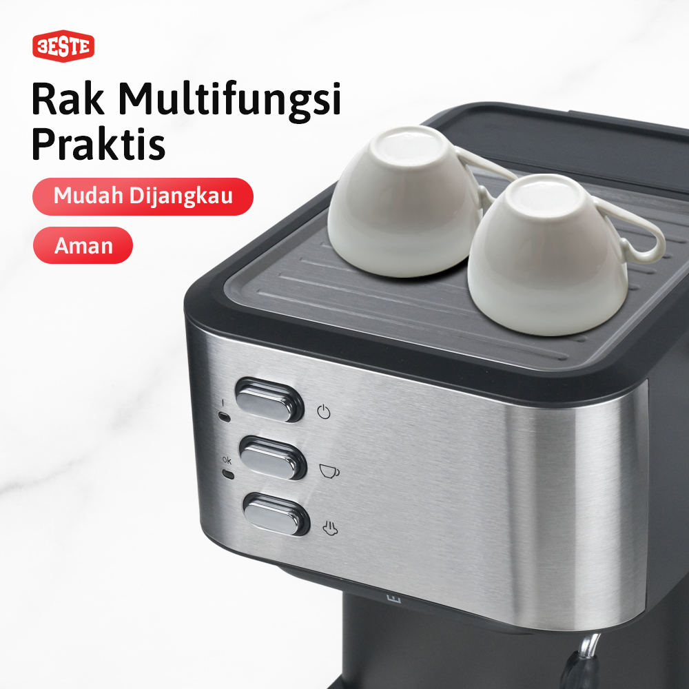 | Hangatkan Cangkir Kopi Bagian atas mesin kopi espresso berfungsi untuk menghangatkan cangkir sebelum digunakan. Cangkir yang hangat membantu menjaga suhu kopi lebih lama dan mencegah rasa kopi berubah akibat perbedaan suhu mendadak. |