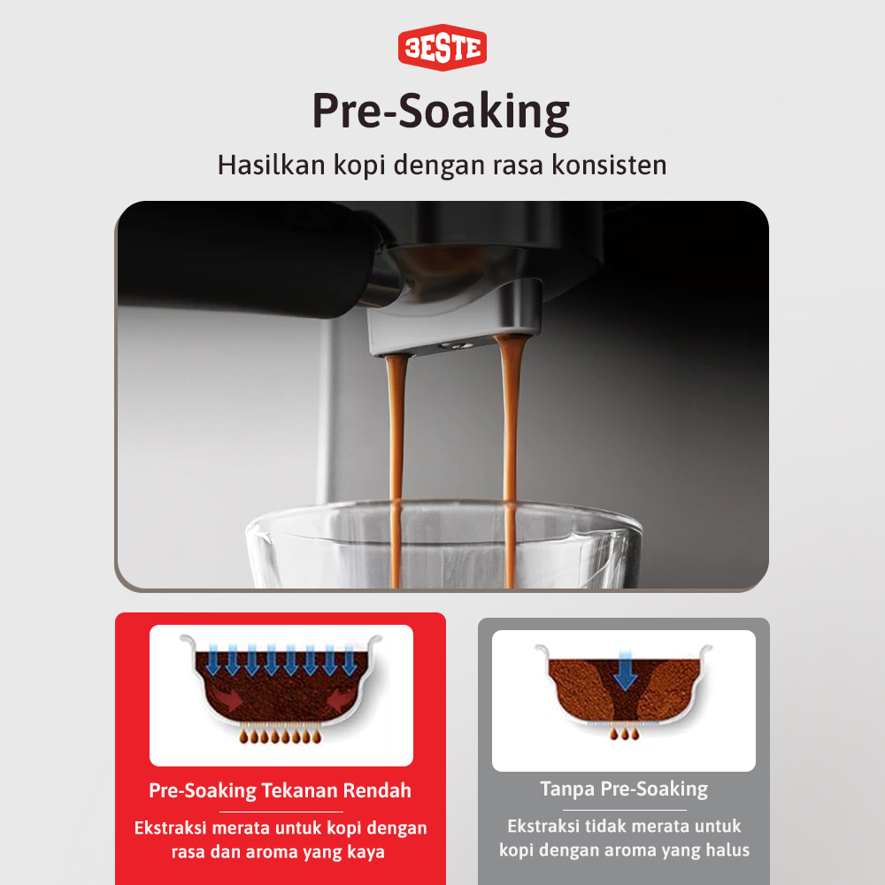 | Hasil Ekstraksi Konsisten Fitur pre-soaking bertekanan rendah memastikan bubuk kopi terendam sempurna sehingga ekstraksi lebih merata. Teknologi pemanas canggih menghasilkan suhu stabil yang menjaga kualitas rasa setiap seduhan. Dengan kombinasi ini, Anda bisa menikmati espresso dengan cita rasa konsisten setiap hari tanpa khawatir hasil berbeda. |