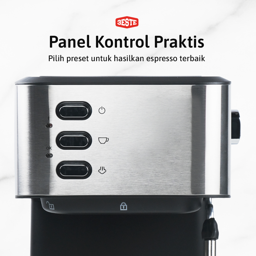 | Panel Kontrol Praktis Dibekali mesin semi-otomatis canggih dengan panel kontrol yang memilih berbagai fungsi, mulai dari tombol power, steam, hingga membuat espresso. Kini Anda bisa menggunakan banyak fungsi hanya dengan menekan satu tombol saja! |