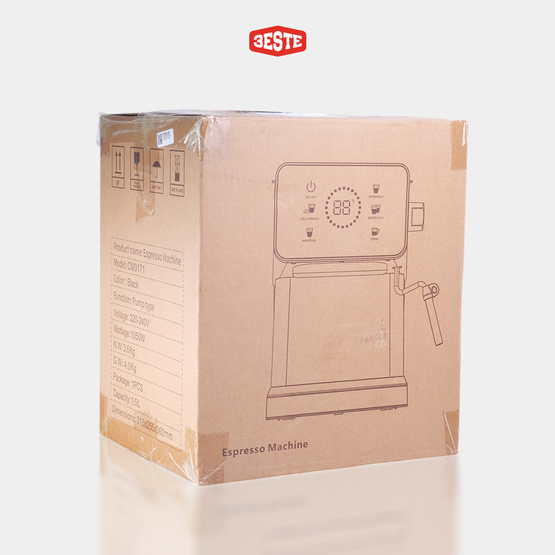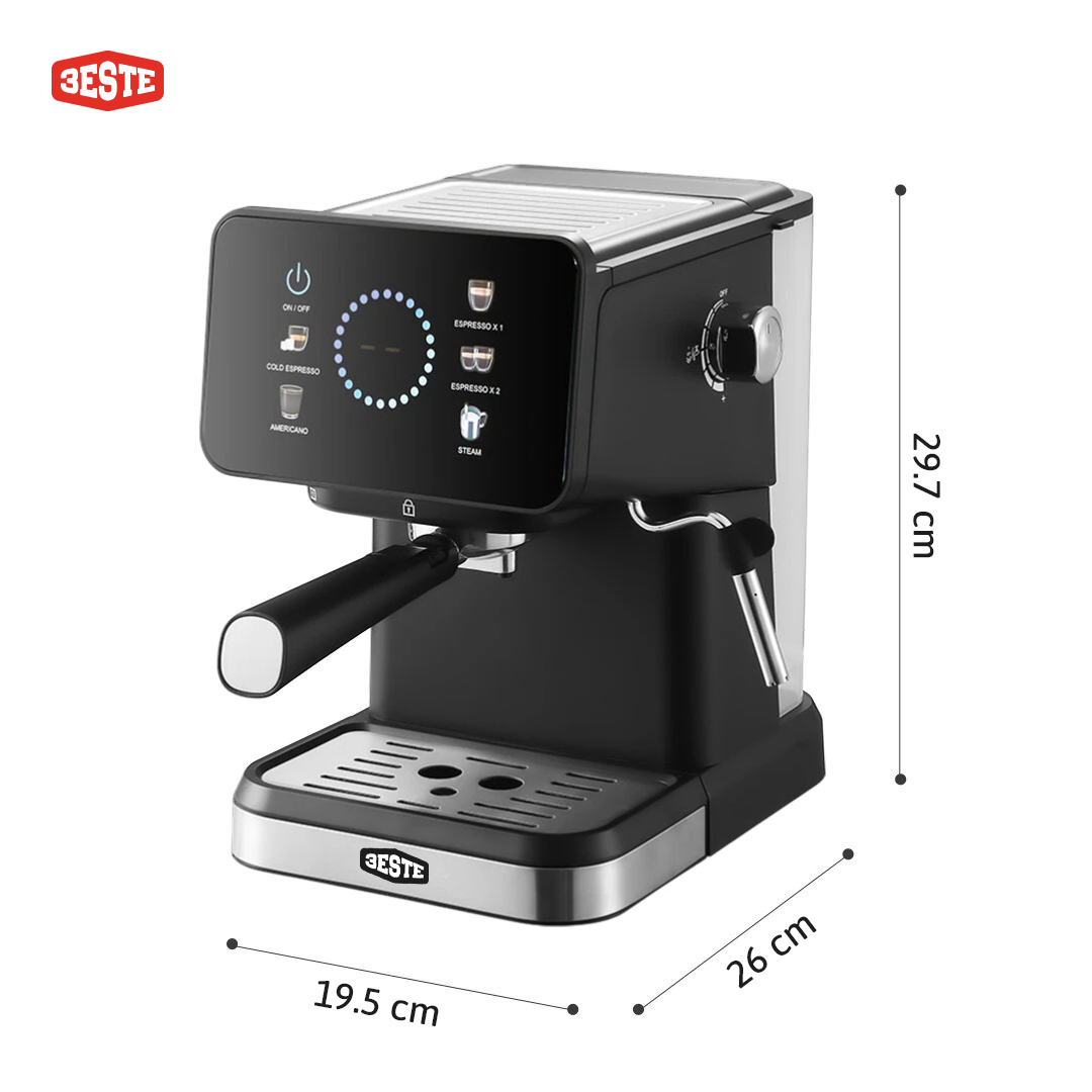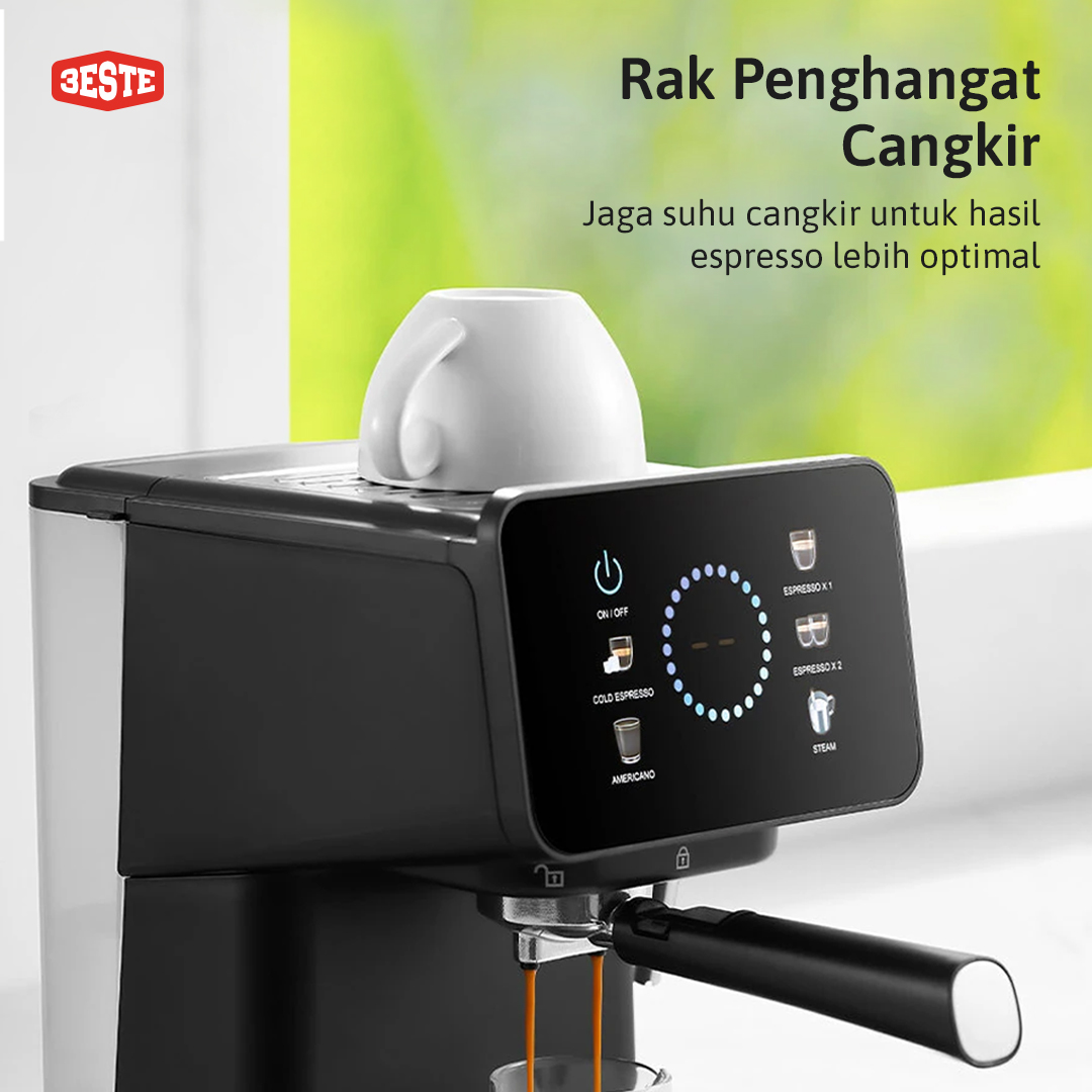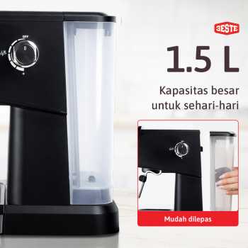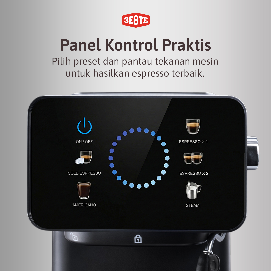 Nikmati sajian kopi ala cafe dari rumah dengan menggunakan mesin kopi Trieste. Mesin bertekanan 15 bar dan teknologi pre-soaking hasilkan espresso dengan crema kaya rasa. Buat aneka kreasi kopi lebih praktis dengan steam wand untuk hasilkan buih susu lembut. Lengkap dengan tombol preset yang dapat dipilih sesuai kebutuhan. Hadir dengan desain elegan yang membuatnya cocok untuk melengkapi dekorasi dapur hingga cafe.