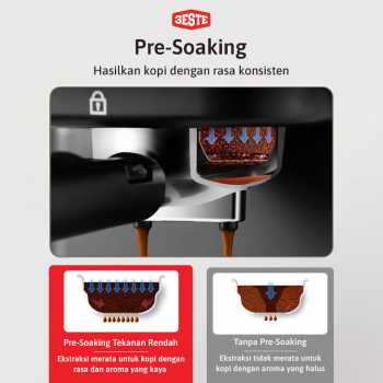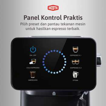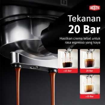 | Tekanan 20 Bar yang Pas Mesin dengan tekanan 20 bar menghasilkan espresso dengan crema terbaik. Crema atau busa pada lapisan atas kopi ini tebal untuk hasil espresso dengan rasa dan aroma yang kaya. |