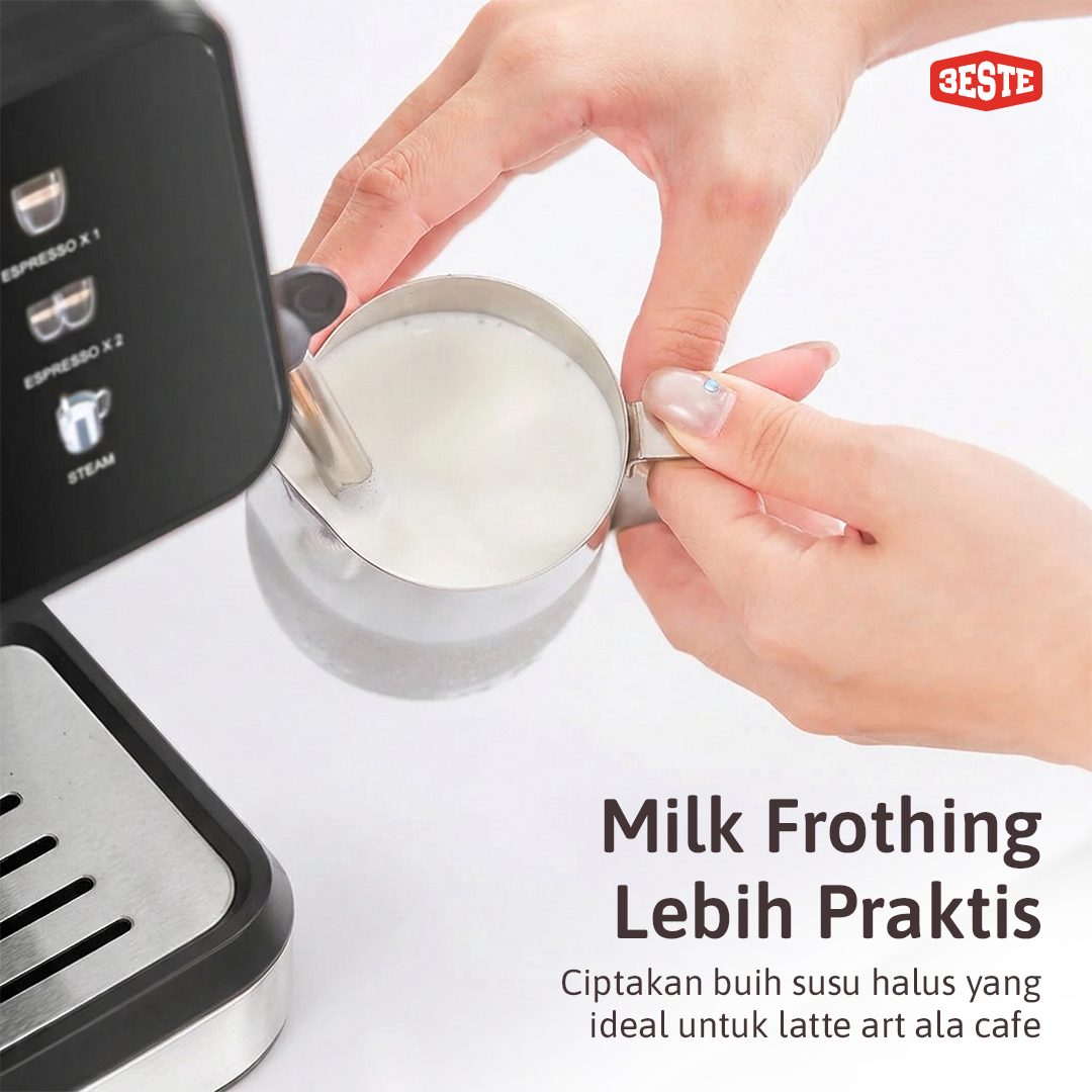 | Milk Frothing Lebih Praktis Membuat berbagai kreasi kopi lebih mudah berkat adanya steam wand. Gunakan wand untuk frothing atau membuat buih susu lembut yang bisa melengkapi cappucino hingga berbagai latte art. |