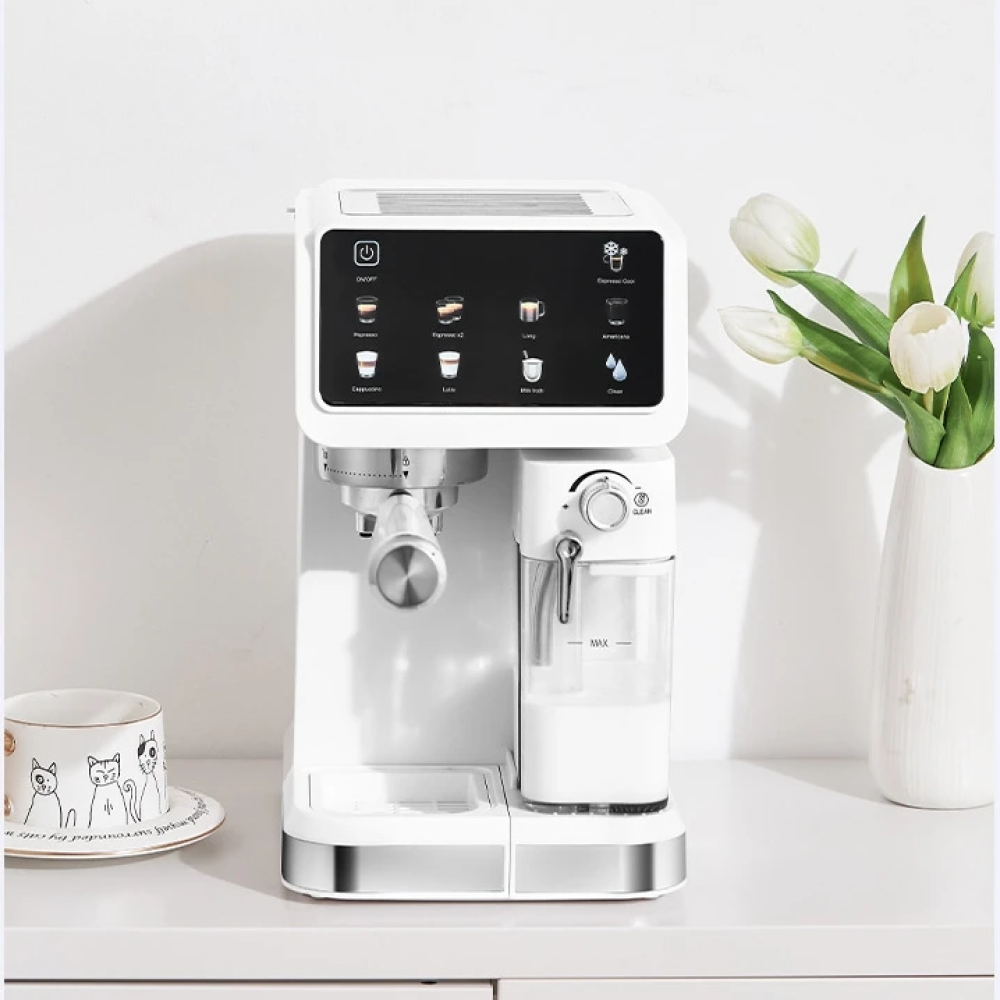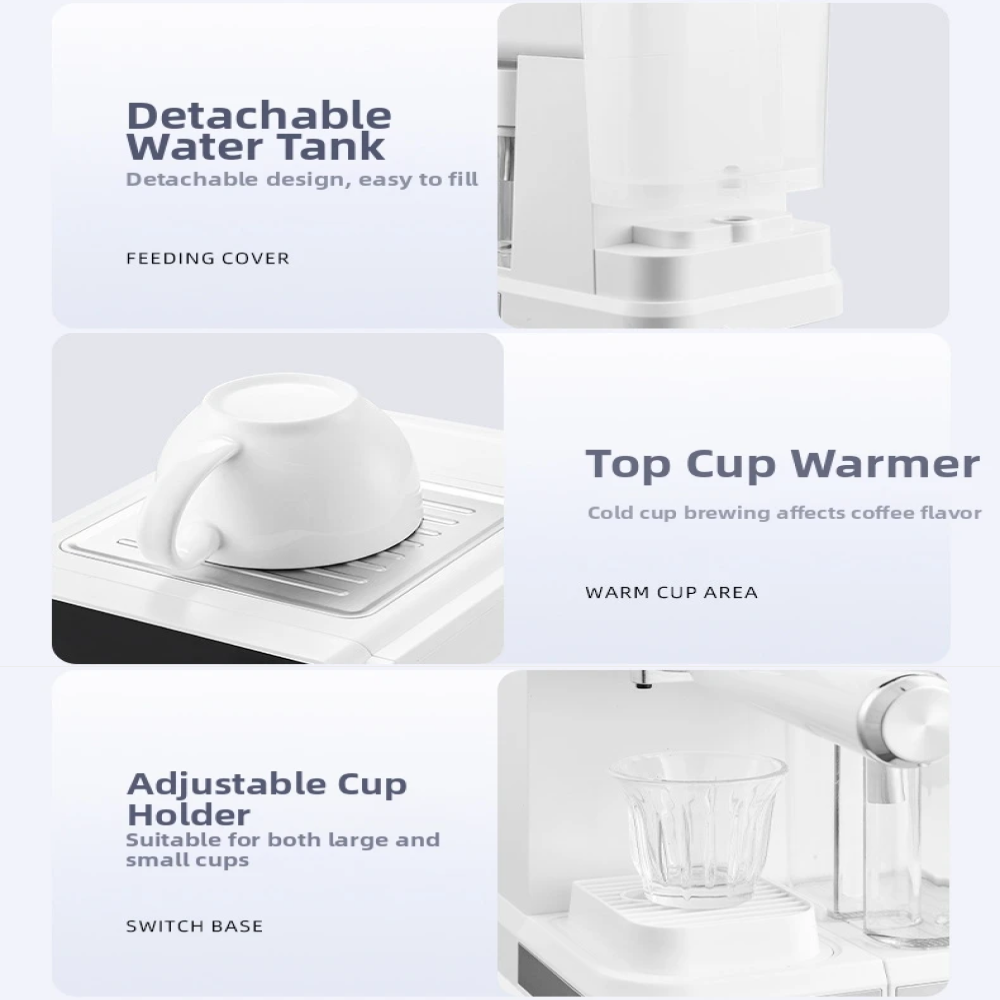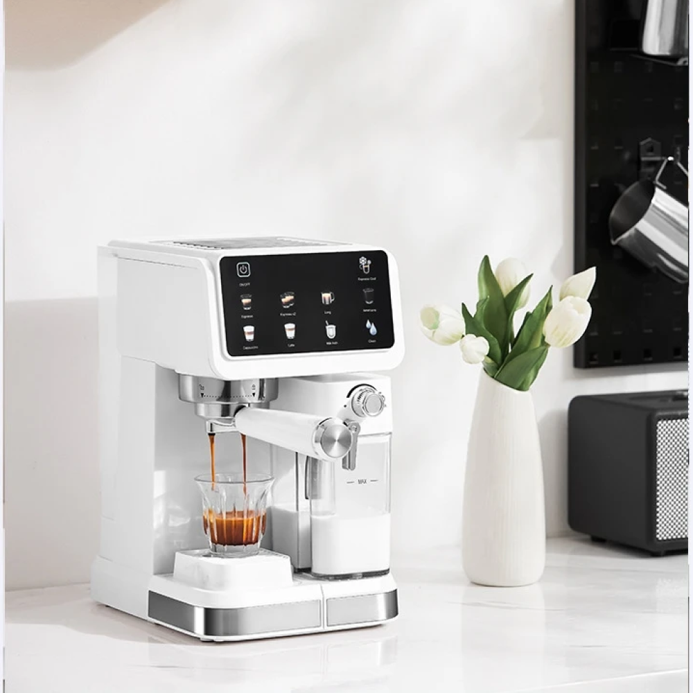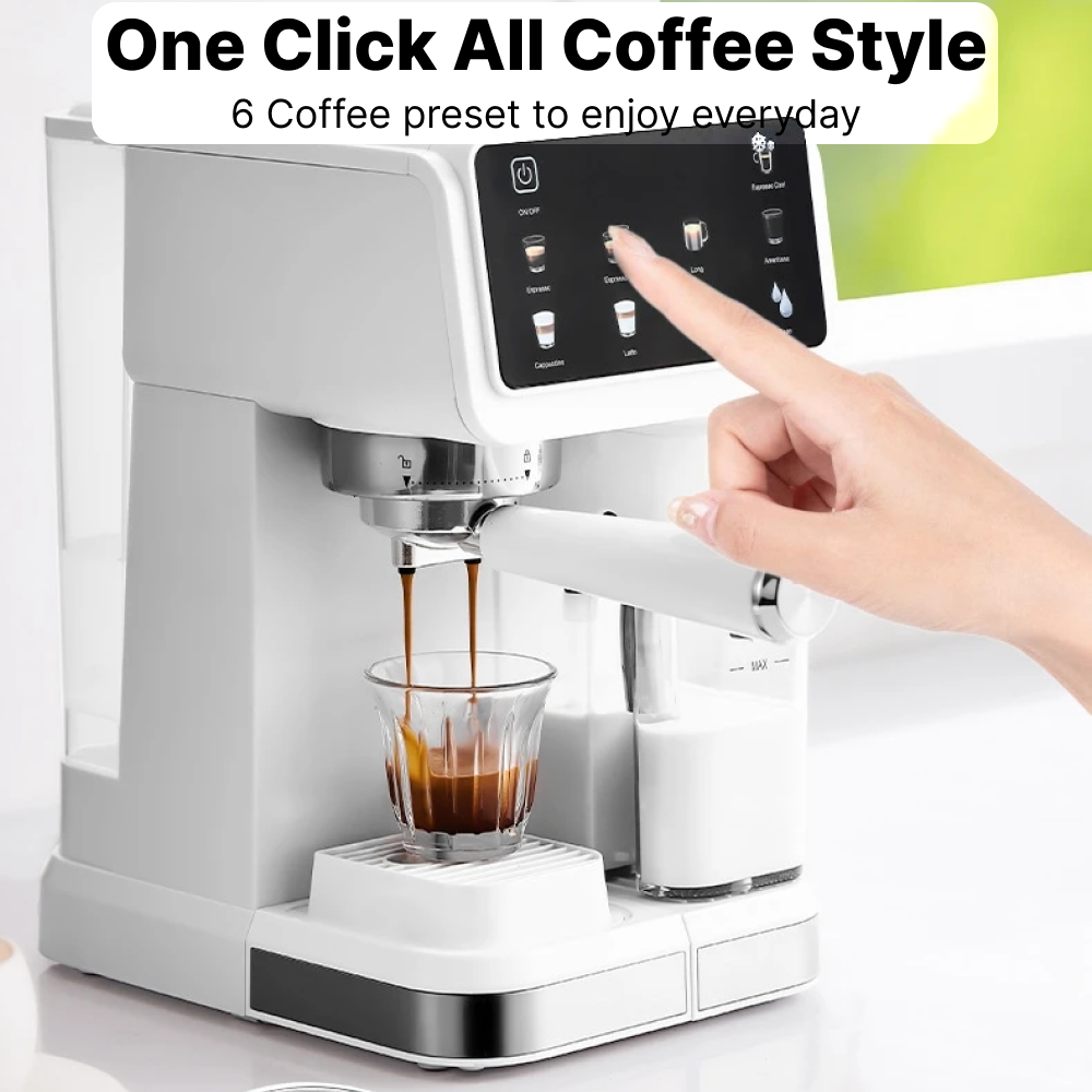 Nikmati sajian kopi ala cafe dari rumah dengan menggunakan mesin kopi Trieste. Mesin bertekanan 20 bar dan teknologi pre-soaking hasilkan espresso dengan crema kaya rasa. Buat aneka kreasi kopi lebih praktis dengan sistem frothing khusus untuk hasilkan buih susu lembut. Lengkap dengan tombol preset yang dapat dipilih sesuai kebutuhan. Hadir dengan desain elegan yang membuatnya cocok untuk melengkapi dekorasi dapur hingga cafe.