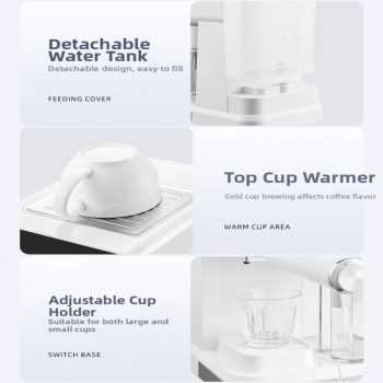 | Rak Multifungsi Bagian atas mesin kopi dilengkapi rak khusus dengan pemanas untuk menyimpan gelas dan cangkir kopi. Kini Anda dapat langsung menyajikan kopi dengan suhu yang hangat yang stabil. |