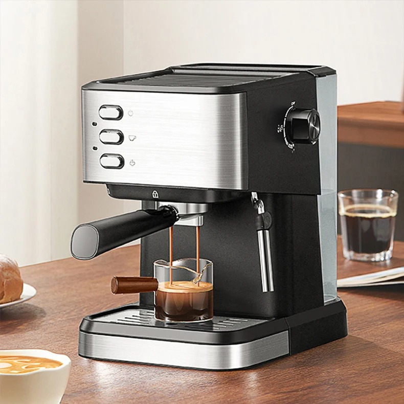 | Material Elegan dan Tahan Lama Housing mesin kopi espresso terbuat dari material aluminium yang memiliki struktur yang kuat namun ringan, sehingga lebih tahan lama untuk penggunaan jangka panjang. Material aluminium juga mampu melepas panas dengan baik agar suhu internal tetap stabil dan mengurangi risiko overheat saat mesin bekerja intensif. |