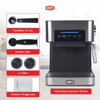 Nikmati sajian kopi ala cafe dari rumah dengan menggunakan mesin kopi dari Trieste. Mesin bertekanan 20 bar dan teknologi pre-soaking hasilkan espresso dengan crema tebal dan kaya rasa. Buat aneka kreasi kopi lebih praktis dengan steam wand yang bisa menghasilkan buih susu lembut. Lengkap dengan tombol preset yang dapat dipilih sesuai kebutuhan. Hadir dengan desain elegan yang membuat mesin kopi dari Trieste cocok untuk melengkapi dekorasi dapur hingga cafe.
