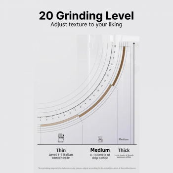 | Atur Tekstur Bubuk Kopi Seduh bubuk kopi sesuai dengan metode penyeduhan yang Anda inginkan. Dilengkapi grinder elektrik dengan 20 level kehalusan, kini Anda dapat membuat kopi dengan berbagai tekstur kopi dari kasar, medium, hingga halus hanya dengan 1 alat. |