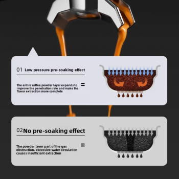 | Hasil Ekstraksi Konsisten Fitur pre-soaking tekanan rendah pastikan seluruh bagian terendam sempurna untuk hasil ekstraksi merata. Teknologi pemanas NTC juga hasilkan suhu panas 92 °C yang stabil. Kini Anda bisa menikmati espresso dengan rasa yang konsisten setiap hari. |