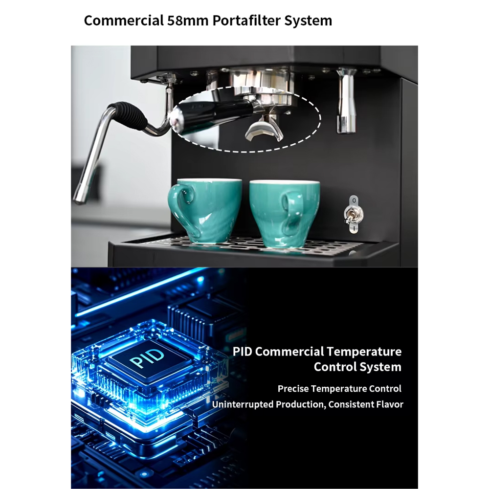 | Double Boiler yang Efektif Menggunakan double boiler terpisah, satu khusus untuk ekstraksi espresso dan satu lagi untuk uap. Dengan sistem ini, mesin dapat menyeduh kopi dan menghasilkan uap secara bersamaan tanpa penurunan suhu, sehingga hasil espresso lebih konsisten dan steam lebih kuat untuk frothing susu. Anda akan mendapatkan rasa kopi lebih optimal dan workflow yang lebih cepat. |