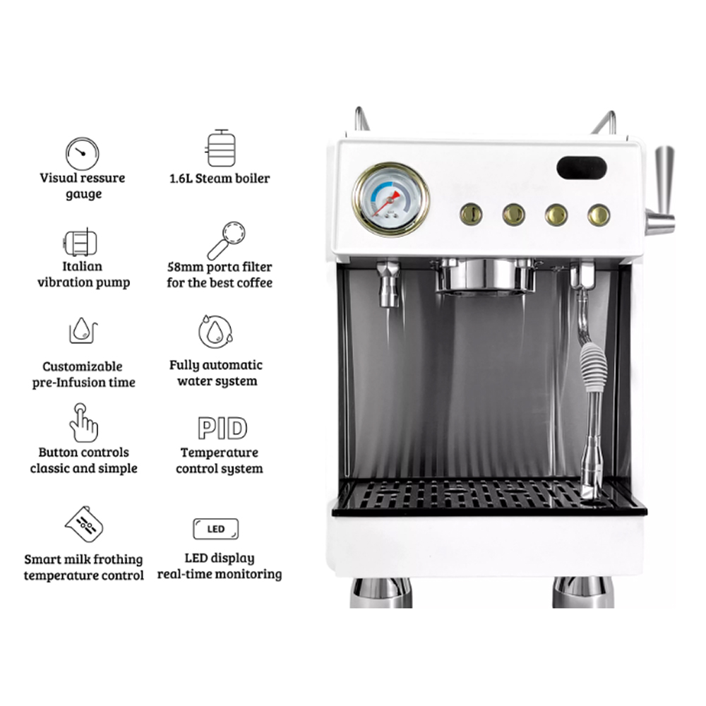 | Menciptakan Crema Terbaik Memiliki sistem tekanan sebesar 15 bar yang mampu menciptakan crema terbaik dalam kopi espresso. Dengan tekanan yang tepat, mesin kopi dapat membantu mengekstraksi banyak lemak dari kopi sehingga mampu menentukan kenikmatan pada rasa dan aroma di kopi. |