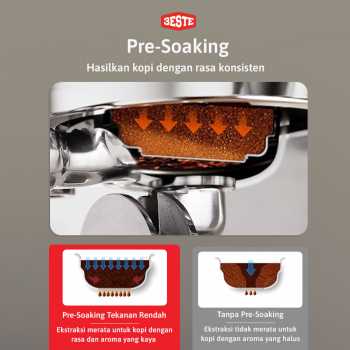 | Hasil Ekstraksi Konsisten Hasil Ekstraksi Konsisten Fitur pre-soaking tekanan rendah pastikan seluruh bagian terendam sempurna untuk hasil ekstraksi merata. Kini Anda bisa menikmati espresso dengan rasa yang konsisten setiap hari. |