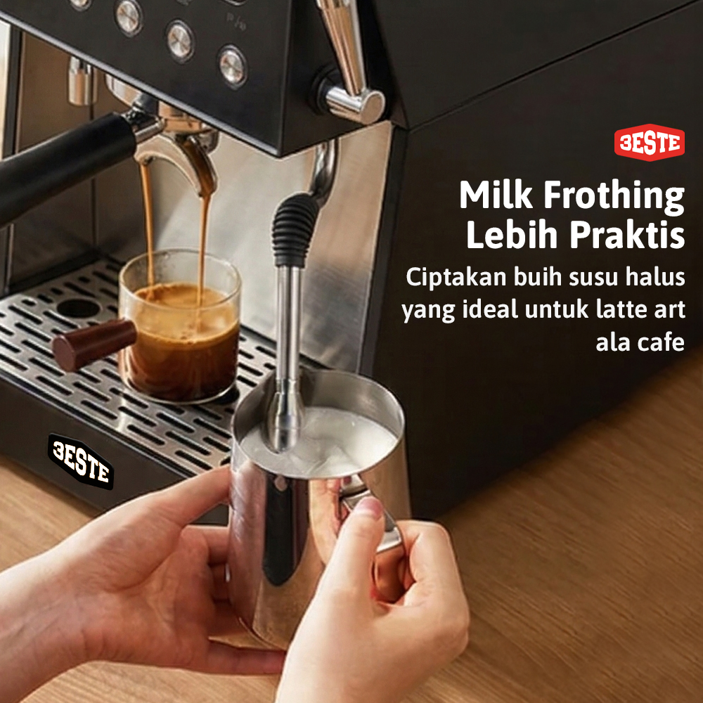 | Milk Frothing Lebih Praktis Membuat berbagai kreasi kopi lebih mudah berkat adanya sistem frothing canggih. Steam wand sudah menggunakan 3 lubang uantuk distribusi uap yang merata. Biuh susu yang dihasilkan pun creamy, glossy, dan konsisten. |