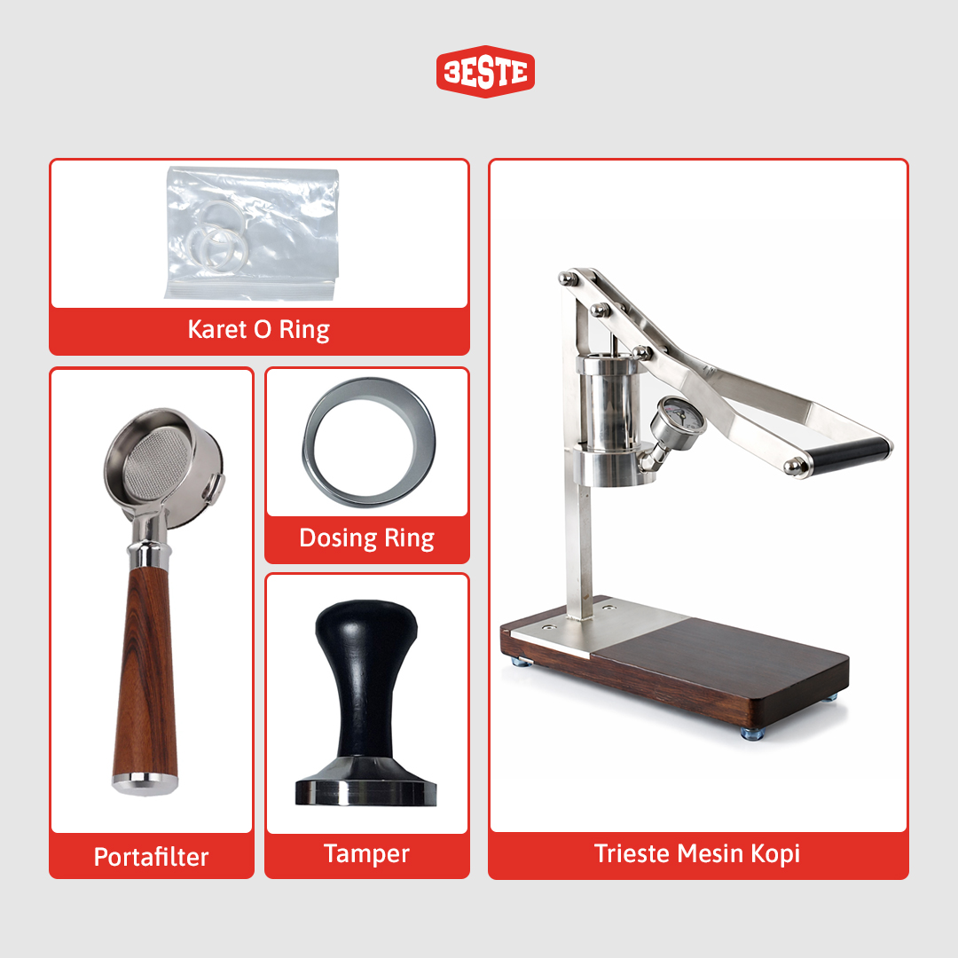 Nikmati sajian kopi yang otentik menggunakan mesin kopi espresso dari Trieste. Mesin ini menggunakan metode ekstraksi manual dengan teknik hand press. Dilengkapi dengan pengukur tekanan untuk mendapatkan tekanan yang pas. Dilengkapi juga dengan handle ergonomis dan anti slip untuk memudahkan proses ekstraksi. Terbuat dari material kokoh dan tahan lama.