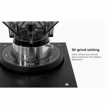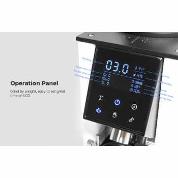Penggiling biji kopi yang satu ini menawarkan berbagai fitur modern yang sempurna untuk kebutuhan komersil. Dilengkapi dengan flat burr plasma ukuran 64 mm, 90 stepless grinder, motor 350 W, pengaturan waktu penggilingan, LCD touch screen, 2 mode cup, start/stop switch touch, hopper 1 kg, kecepatan 1400 RPM, kemampuan grinding 7-12 kg/jam, dan motor working time mode. Sempurna untuk membuat Turkish Coffee, Espresso, French Press, hingga Pour Over.
