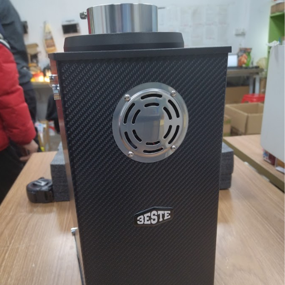| Pemantauan Suhu Bubuk Kopi Dilengkapi dengan sensor suhu untuk memantau suhu bubuk kopi selama penggilingan. Ketika suhu mencapai 38 °C, mesin akan berhenti menggiling kemudian mengaktifkan kipas dan menunggu hingga suhu turun ke sekitar 35 °C. Mampu mencegah pemanasan berlebih pada kopi yang bisa merusak rasa dan kualitas biji kopi. |