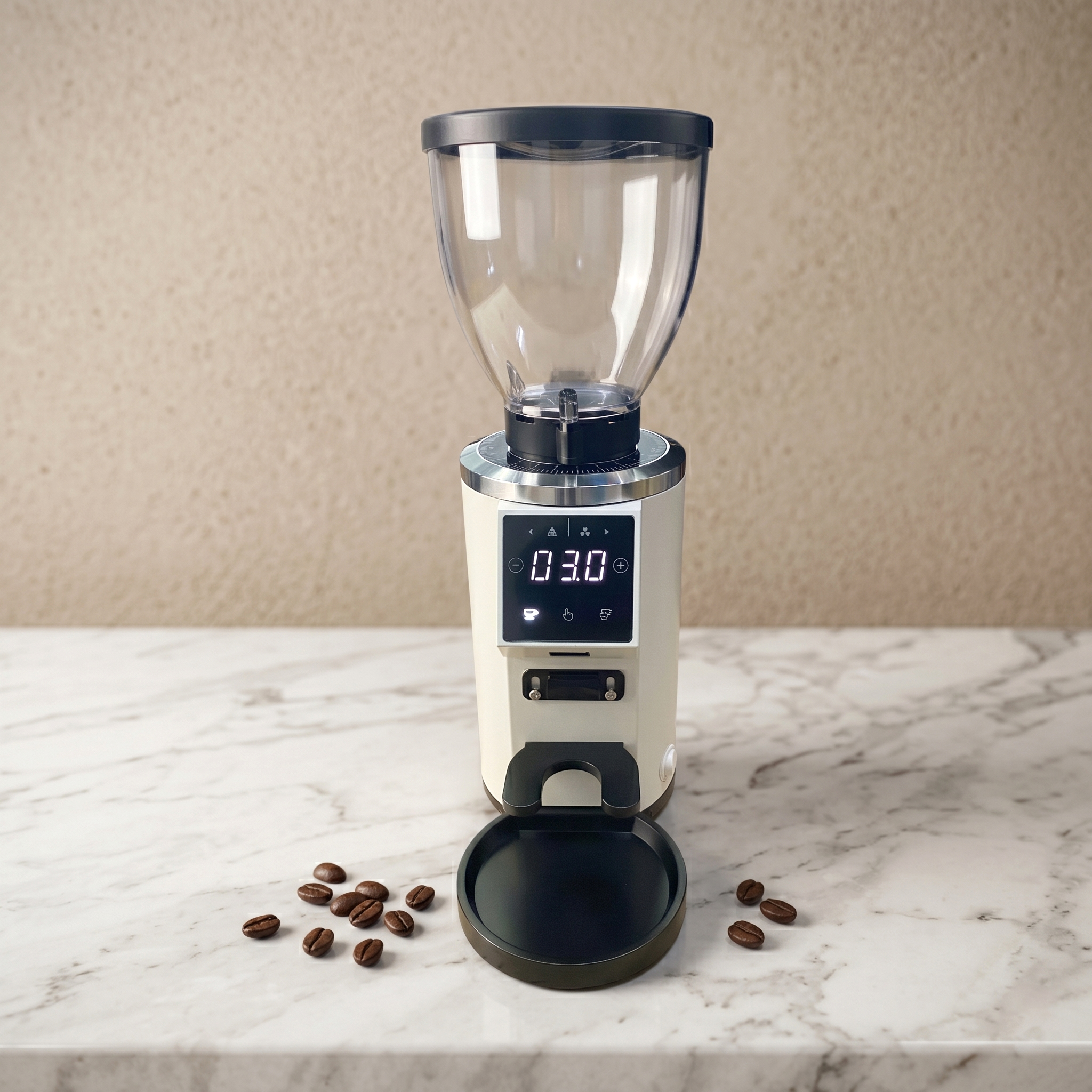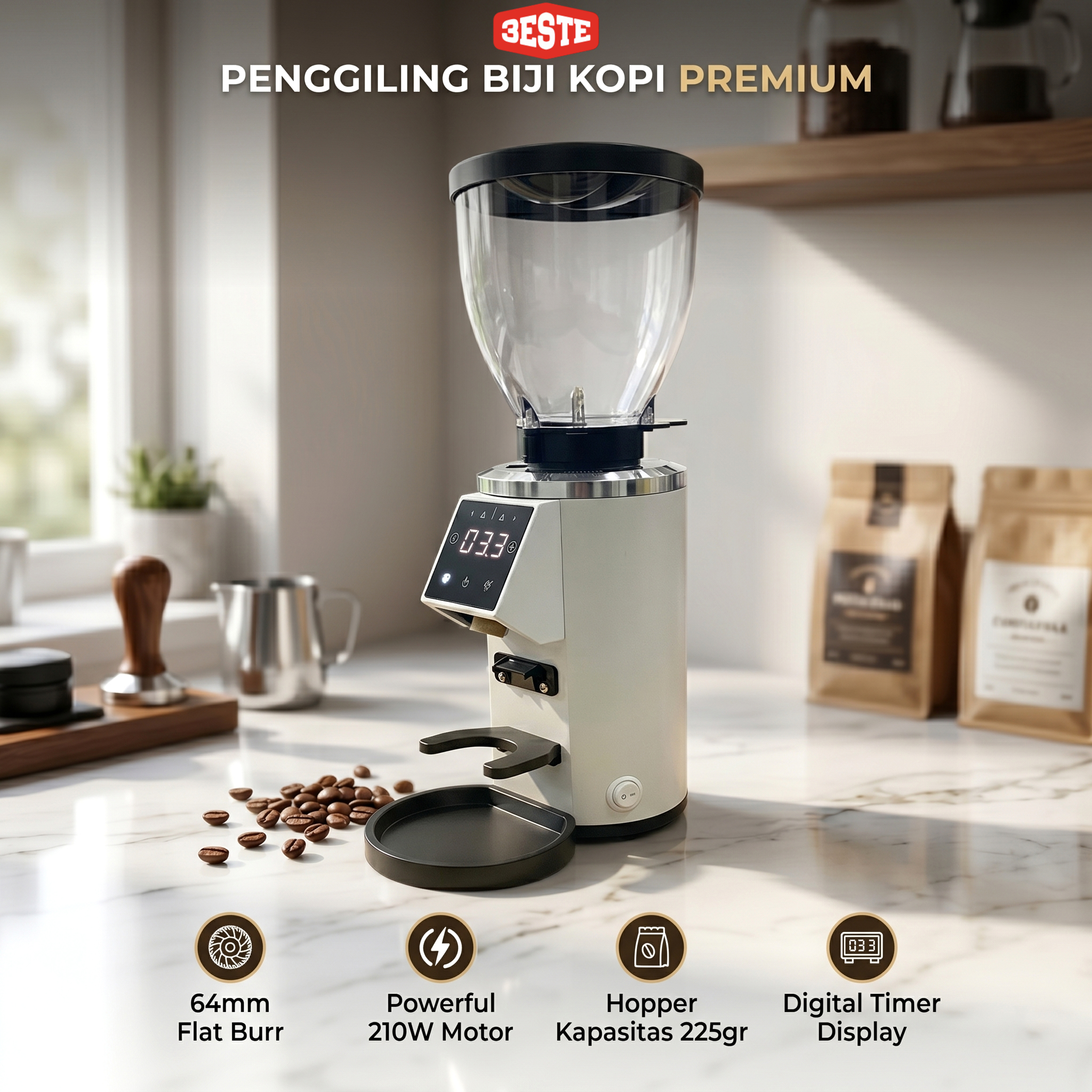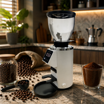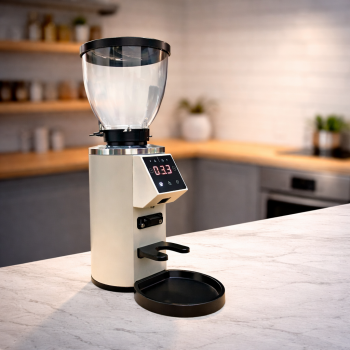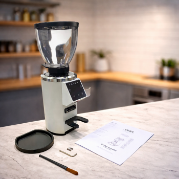 Penggiling biji kopi yang satu ini menawarkan berbagai fitur modern yang sempurna untuk kebutuhan komersil. Dilengkapi dengan flat burr plasma ukuran 64 mm, 90 stepless grinder, motor 210 W, pengaturan waktu penggilingan, LCD, touch screen, 2 mode cup, hopper 225 g, kecepatan 2000 RPM, adjustment disk, dan masih banyak lagi. Sempurna untuk membuat Turkish Coffee, Espresso, French Press, hingga Pour Over.