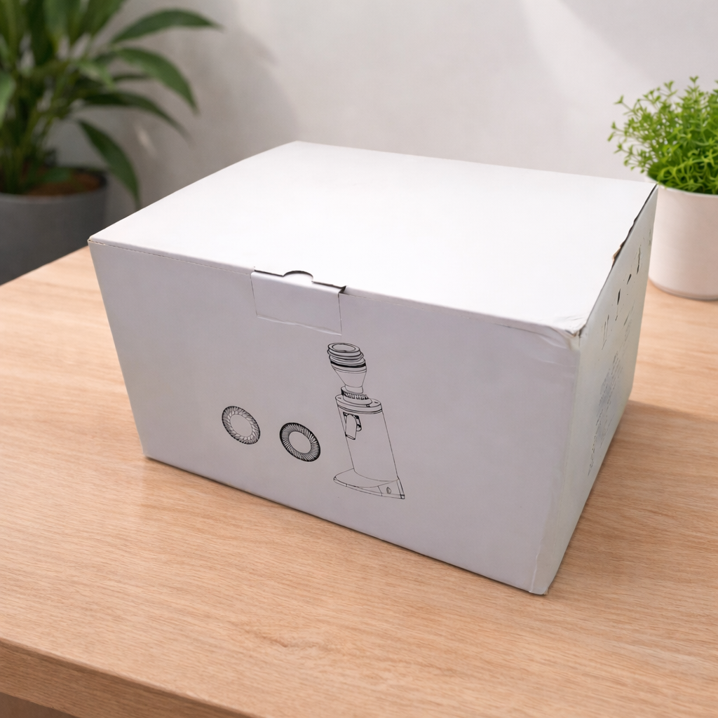 | Penggiling Cakram Datar Penggiling cakram datar berbahan stainless steel berdiameter 64 mm mampu menggiling biji kopi secara merata dan stabil. Desain cakram datar membantu meminimalkan perbedaan ukuran partikel, menjaga profil rasa kopi tetap seimbang, serta mengurangi risiko over-extraction atau under-extraction. |