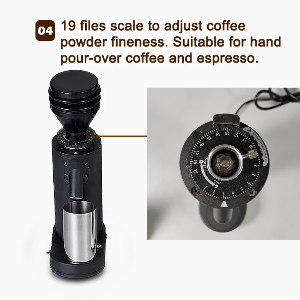 Penggiling kopi elektrik dengan kecepatan 550 RPM ini hadir dengan kontrol presisi, 19 tingkat kehalusan, serta pisau stainless steel 420 yang tahan lama. Desain miring ergonomis memudahkan aliran bubuk, sementara wadah bermagnet menjaga stabilitas tanpa tumpah. Praktis, efisien, dan menjaga cita rasa kopi tetap murni.
