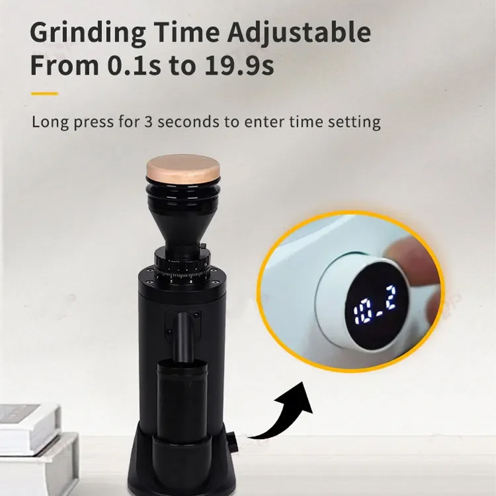 | Kontrol Presisi Durasi Gilingan Dilengkapi fitur adjustable timer dari 0.1 hingga 19.9 detik yang memungkinkan Anda mengatur durasi penggilingan secara presisi sesuai kebutuhan. Cukup tekan dan tahan selama 3 detik untuk masuk ke mode pengaturan waktu, lalu sesuaikan dengan mudah melalui panel digital. |