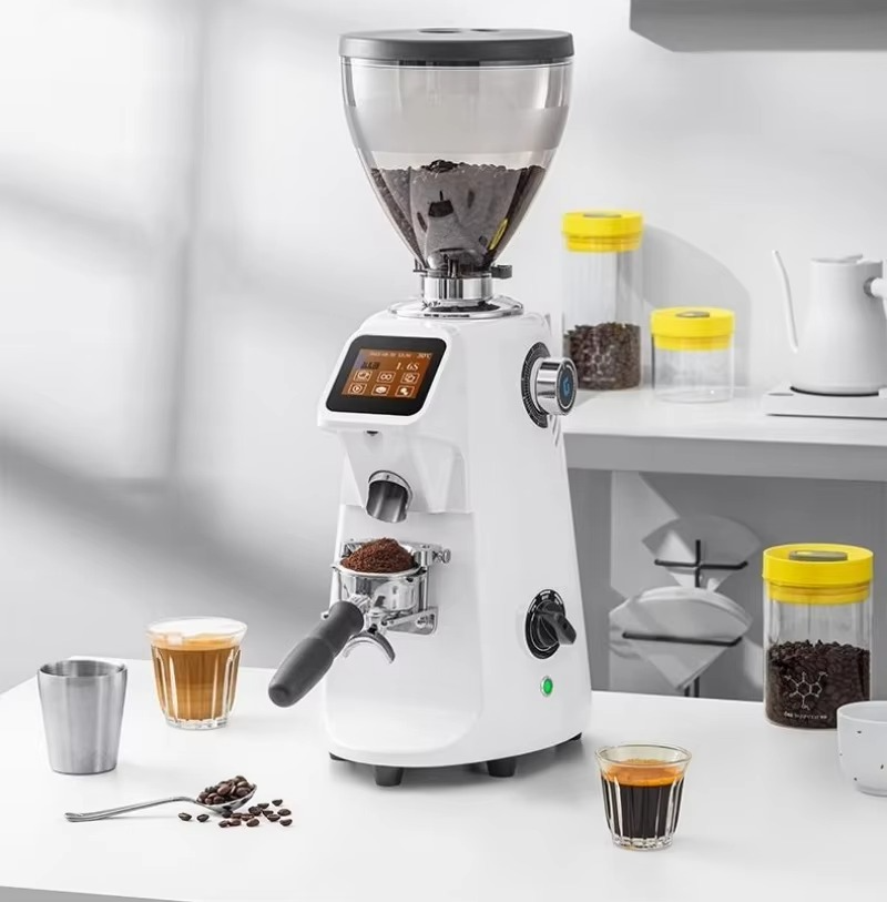 | Dudukan Portafilter Stabil Penggiling biji kopi dirancang dengan dudukan portafilter hands-free yang kokoh dan dapat disesuaikan ketinggiannya. Bubuk kopi langsung jatuh ke portafilter tanpa perlu dipegang, meningkatkan efisiensi dan menjaga area kerja tetap rapi. |