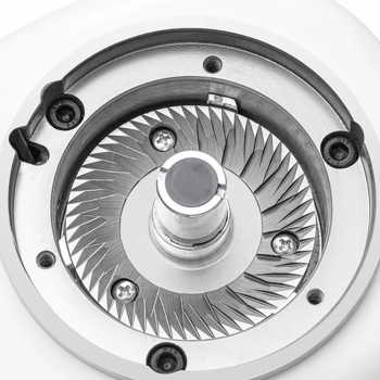 | Hasil Gilingan Lebih Konsisten Penggiling cakram datar berbahan stainless steel berdiameter 74 mm mampu menggiling biji kopi secara merata dan stabil. Desain cakram datar membantu meminimalkan perbedaan ukuran partikel, menghasilkan kopi yang seragam dengan panas minimal. Ini membuat profil rasa kopi tetap seimbang, serta mengurangi risiko over-extraction atau under-extraction. |