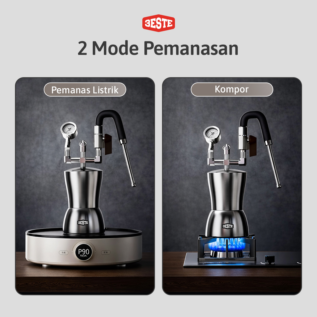 | Berbagai Opsi Pemanas Air Steam milk frother dari Trieste sangat cocok digunakan untuk keperluan pribadi maupun komersial. Metode frothingnya menggunakan dry steam yang dapat dipanaskan secara menual menggunakan kompor gas atau pemanas listrik. Opsi pemanas yang fleksibel ini juga membuatnya cocok dibawa saat camping. |