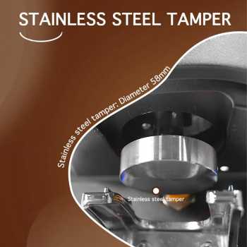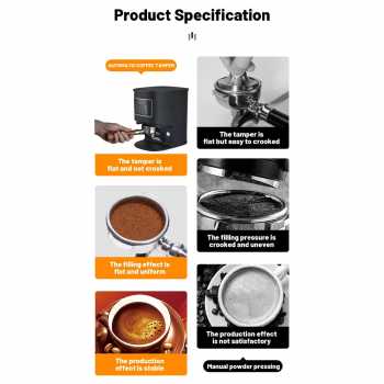 | Operasi Otomatis, Minim Tenaga Sistem otomatis mengurangi kebutuhan tamping manual yang melelahkan. Hal ini membantu mencegah ketegangan tangan dan pergelangan saat tamping berulang. Selain itu, tekanan yang seragam di setiap proses membuat hasil espresso lebih konsisten dan profesional, bahkan untuk pemula. |