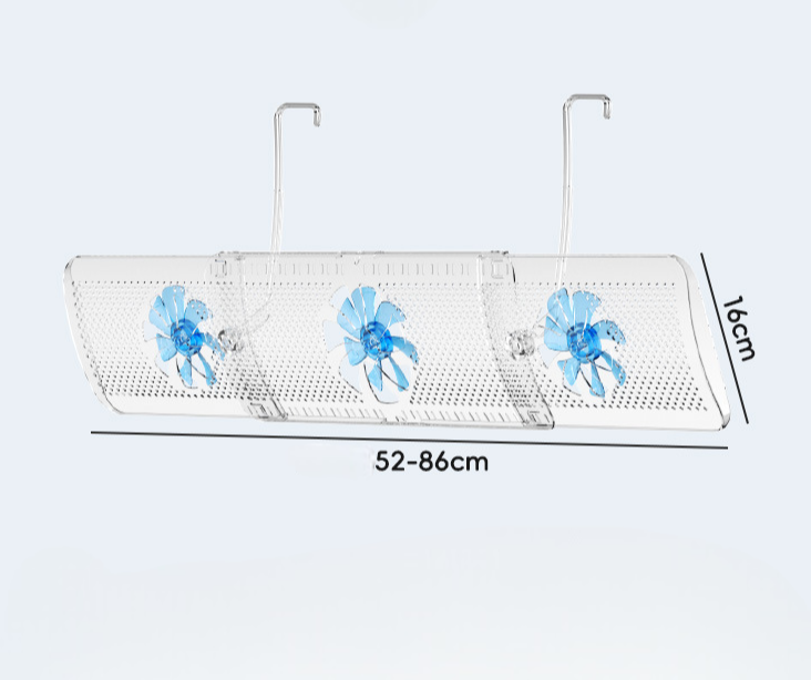 | Sebaran Udara Lebih Halus Cover angin AC ini dilengkapi dengan tiga kipas mini yang berfungsi membantu mengurai aliran udara dari AC agar terasa lebih lembut. Kipas tersebut bekerja dengan cara memecah hembusan angin menjadi aliran yang lebih halus, sehingga tidak terasa menusuk kulit. Selain meningkatkan kenyamanan, sistem ini juga membantu sirkulasi udara menjadi lebih optimal. |